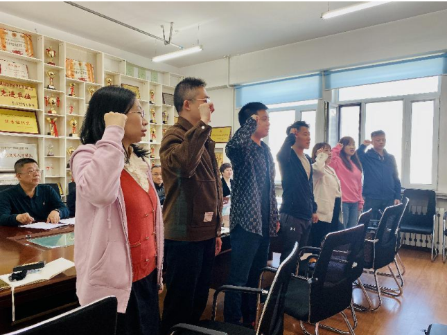 会上,新入职教师进行了入职宣誓仪式,老师们以饱满的精神状态对从事教师职业做出了庄严承诺。