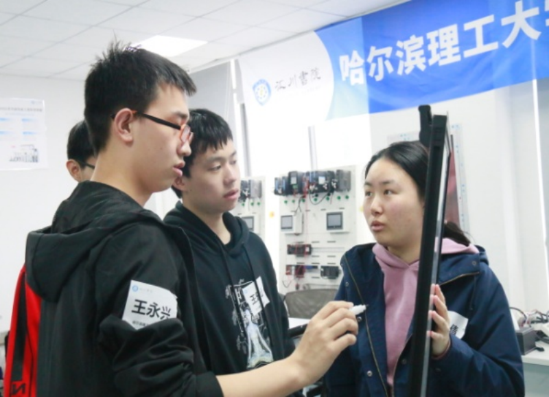 在座谈交流会上,汇川技术石京儒经理对自动化学院的热情接待表示感谢,并对公司的发展历程、企业文化、业务领域、战略布局和人才需求情况等作了介绍,赞扬了自动化学院在校企合作及产业学院建设方面取得丰硕成果,并表示愿与自动化学院在人才培养、实习实训基地共建和就业等方面进一步开展深度合作。副院长李冰对汇川公司一行做客自动化学院表示欢迎,感谢汇川公司在校企实验室共建与学生赴企业实训环节中给予的大力支持,对下一阶段的合作对接提出了规划,表示将依托现代产业学院,不断深化校企合作,将行业需求和企业反馈作为人才培养方案修订的重要参考。校企双方对刚刚结束的首次“自动化专业汇川实训营”工作进行了总结,就产业学院建设、汇川班组建、人才培养方案修订、校企共建课程、编写教材、学生赴企业实习实训等方面进行了深入地交流和探讨。