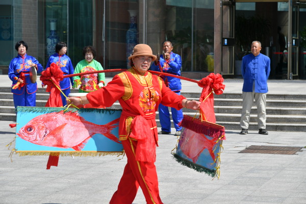 在现场,渔家锣鼓、渔家秧歌、渔民号子三渔文化展演带来阵阵掌声。渔家锣鼓体现了大海的雄浑浩瀚,同时也鼓舞了人们与大海斗争的信心与勇气,是渔民海上生活中不可缺少的娱乐方式和精神支柱。渔家秧歌是荣成沿海渔民在长期的渔业生产生活中,将荣成的地域特点和渔民性情巧妙地糅合在一起,表演既有传统的十字步,以及逗、浪、扭、摆、跳,又有渔家人的劲、憨、粗、宏。渔民号子既有鼓舞情绪、调节精神的作用,又有指挥生产、协调动作、统一行动的功能,其音乐性、节奏性、实用性与生产劳动紧密相连。