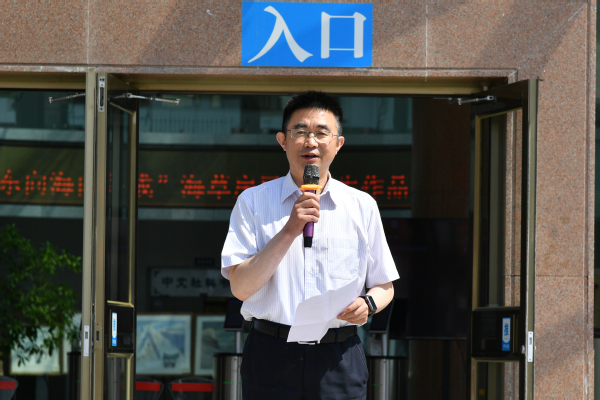 董昭胜局长在开幕式上致辞,他说,非物质文化遗产是民族智慧的结晶,近年来在荣成市委市政府的正确领导下,荣成市文旅部门加大非遗保护传承力度,取得了瞩目成绩,并在全国创新首创了海洋民俗文化月的文化品牌。本次活动我们精选荣成市极具代表性的非遗项目,以非遗传承人展演,师生现场体验的创新方式,使大家身临其境,感受荣成非遗的魅力,我们既期待本次活动能提高荣成非遗文化的知名度,也期待热爱非遗的种子能在广大师生的心中发芽,非物质文化遗产是我们人类的共同财富,传承保护工作任重道远,让我们一起努力,共创荣成非遗事业灿烂的明天。