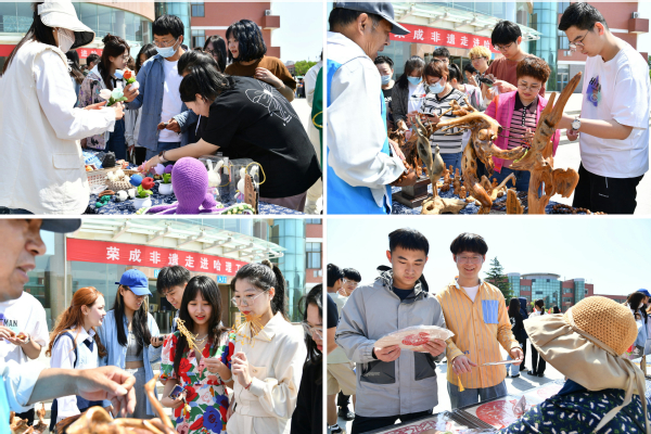 开幕式结束后,荣成学院师生现场与31位非遗传承人近距离交流,探寻荣成非遗的魅力。