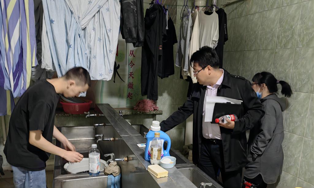 随后省财政厅调研组分别深入走访调研了我校新食堂建设工地,学生公寓,校园道路,楼宇保温防水,学生浴池,变电所等维修改造项目。对后勤改造项目进行了实地察看,对我校后勤改造的工程进度、工程质量、完工情况、资金使用情况进行了调研了解,并对我校下一步急需改善的后勤短板和弱项提出了宝贵意见建议。