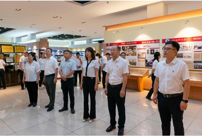 为持续推进学习贯彻习近平新时代中国特色社会主义思想主题教育走实走深,在中国共产党的成立102周年纪念日前夕,6月28日上午,测通学院党委开展“传承校史文化 汲取奋进力量”主题教育研学实践主题党日活动,学院党委书记黄春丽、院长吴海滨,党委副书记张宏磊、副院长盖建新、孙晓明、孙慧,教师党员、学生党员代表参加活动。