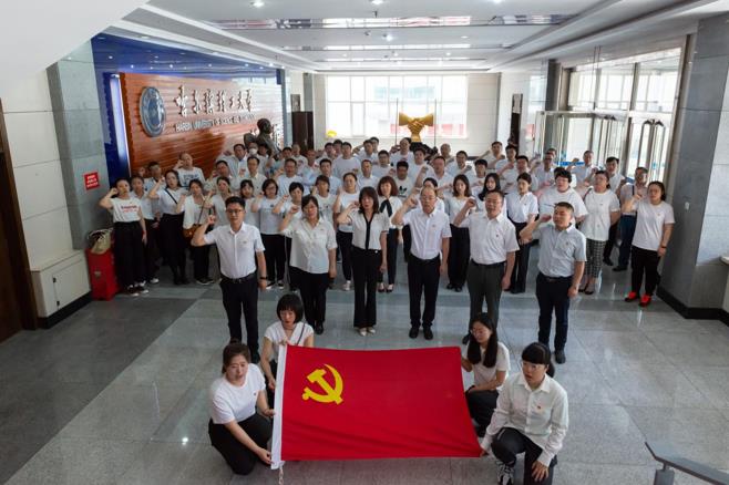 参观结束后,全体同志在展馆序厅,面向党旗,右手握拳,在张宏磊同志领誓下,重温入党誓词、重忆入党初心。铿锵有力的誓言,激励在场的教师党员不忘入党初心,牢记职责使命,以入党时的精神和热情投入到教书育人工作中,为学校的“双一流”建设发展献智助力。