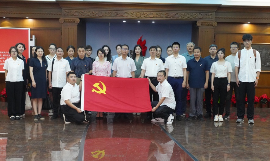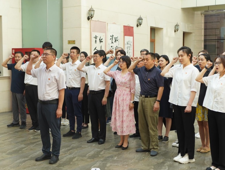 纪念馆宣誓厅,悬挂着鲜艳的中国共产党党旗。在武建龙院长领誓下,大家面对党旗,庄严宣誓,一起重温入党誓词,牢记为党育人、为国育才初心使命。